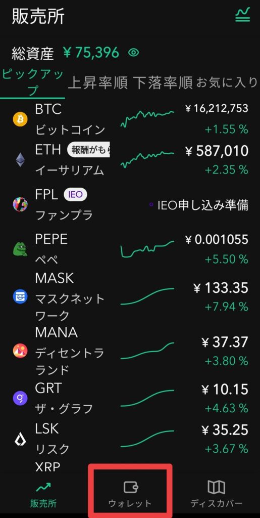 「ウォレット」をタップ