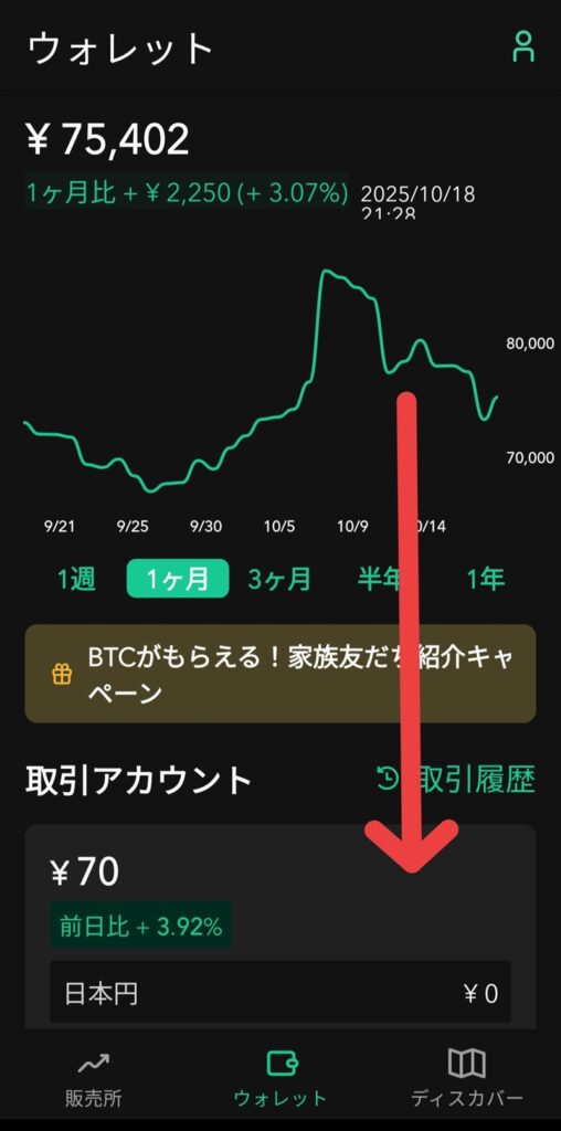 ① アプリで「ウォレット」→「日本円」をタップ