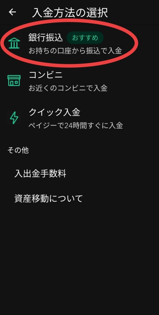悩むところもなく、スムーズに入金できました。