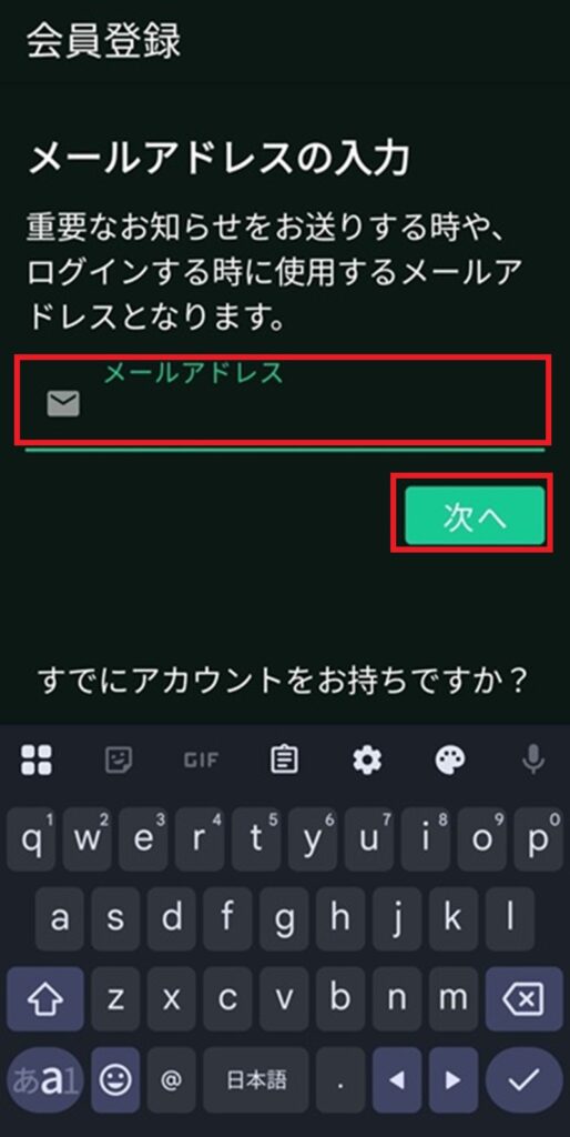 - 会員登録 メールアドレスの入力