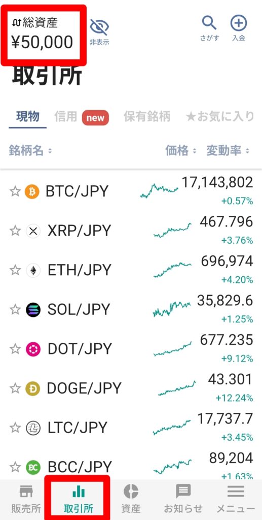 販売所で購入すると、スプレッドという手数料のようなものが3%くらいかかるので、必ず取引所で購入しましょう。