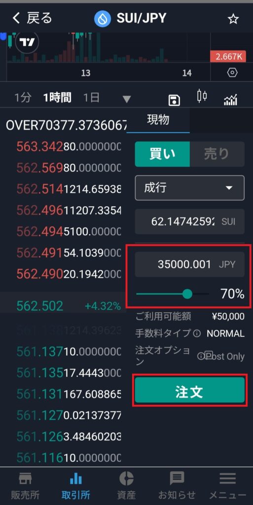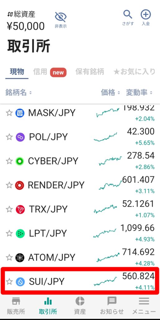 ステップ4を数回繰り返し、約\50,000分のSUIを購入できました。