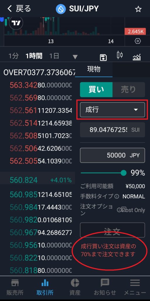 ビットバンクでは、成行注文と指値注文の2種類があります。