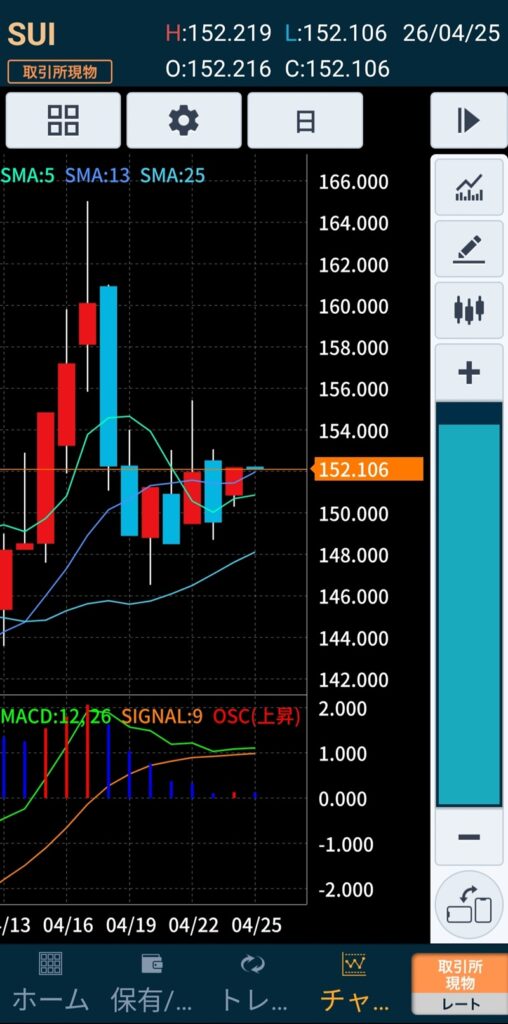 そんな迷いが頭をよぎる瞬間、ありませんか? 実は今回のSUI積立、価格は前回の148円台からさらに上がり、152円台での約定となりました。